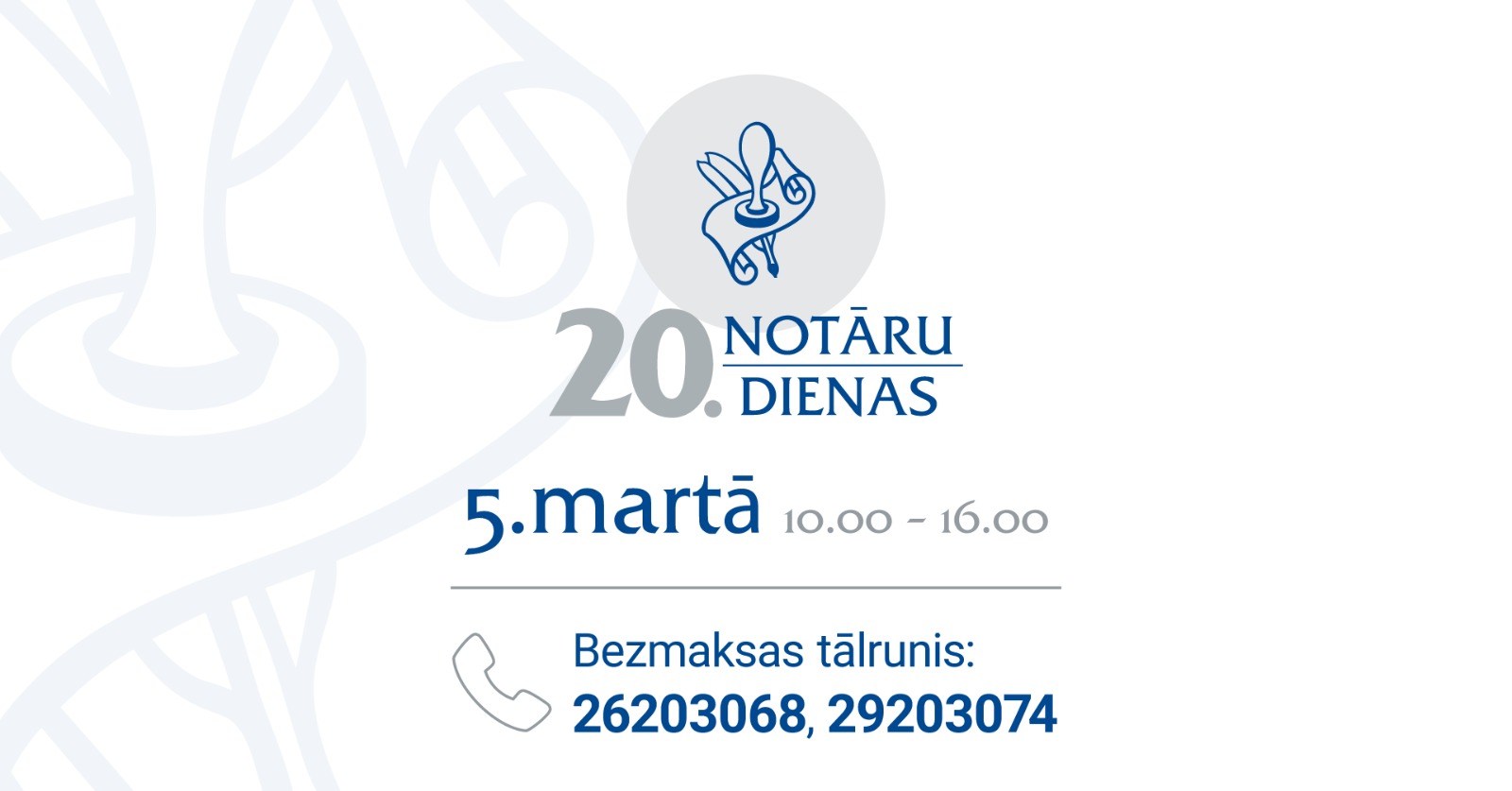 “Latvijas notāri, jau 20 gadus rīkojot Notāru dienas, apliecina atvērtību sabiedrībai un vēlmi skaidrot juridiski sarežģītus jautājumus saprotamā valodā. Notāra uzdevums ir nodrošināt tiesisko drošību, skaidrot darījumu juridiskās sekas un palīdzēt cilvēkiem pieņemt pārdomātus lēmumus, mazinot iespējamos strīdus nākotnē. Tāpēc arī šogad aicinām ikvienu izmantot iespēju 5. martā laikā no 10.00-16.00 vērsties pie zvērinātiem notāriem visā Latvijā, lai telefoniski vai klātienē notāru birojos saņemtu juridiskas konsultācijas par dažādām tēmām: mantošana, laulības līgumi, pilnvaras, partnerības noslēgšana, nekustamā īpašuma darījumi un citas,” uzsver Latvijas Zvērinātu notāru padomes priekšsēdētājs Aigars Kaupe.